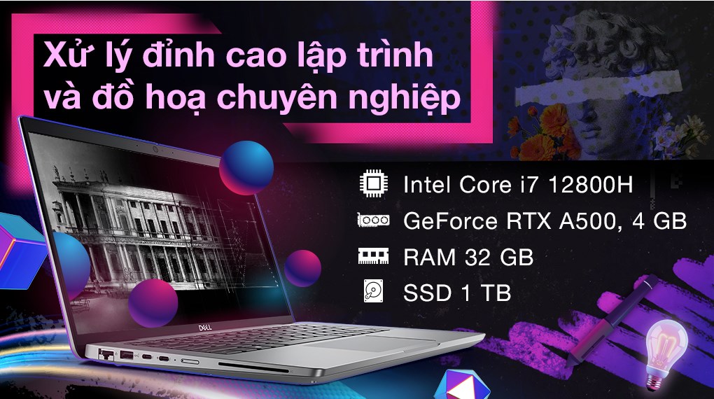 Laptop Dell được trang bị bộ vi xử lý Intel Core i7 12800H gồm 14 nhân và 20 luồng, có xung nhịp tối đa lên đến 4.8 GHz kết hợp cùng card rời NVIDIA GeForce RTX A500 với 4 GB VRAM hoàn toàn tương thích tốt với các phần mềm thiết kế 3D, render đồ họa hoặc video ấn tượng. Việc thiết kế phần mềm hay phát triển nội dung cũng không thành vấn đề.