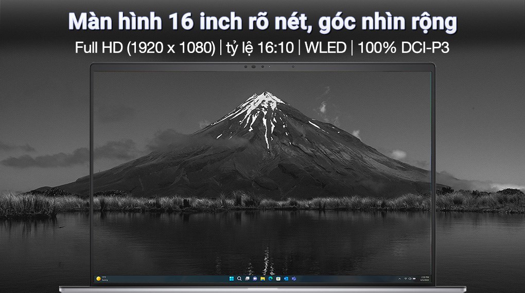 Màn hình WLED kích thước 16 inch cùng độ phân giải Full HD (1920 x 1080) giúp mọi nội dung hay hình ảnh được hiển thị rõ nét và tươi sáng nhất, ngoài việc hỗ trợ làm việc tuyệt vời thì cũng mang đến một phần nhìn tốt phục vụ cho các nhu cầu giải trí cá nhân. Tỷ lệ khung hình 16:10 mở rộng về bề dọc nên khi làm việc bạn cũng không cần phải cuộn xuống quá nhiều để xem nội dung.