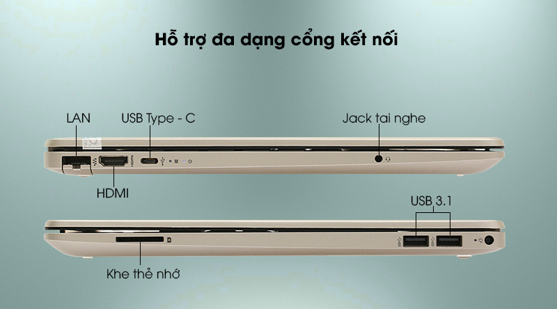 Là một chiếc laptop văn phòng mỏng nhẹ nhưng HP 15s vẫn trang bị đầy đủ các cổng kết nối thông dụng hiện nay: USB 3.1, HDMI, USB Type-C, cổng mạng LAN và 1 khe cắm thẻ nhớ để tiện dụng cho nhu cầu sử dụng.