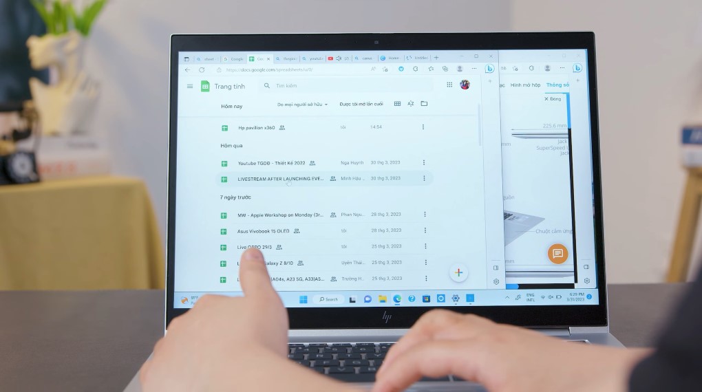 Thêm một đặc điểm thiết kế nữa mà mình rất thích trên HP Elitebook X360 chính là khả năng xoay màn hình 360 độ, cho phép mình dễ dàng chuyển đổi giữa các chế độ sử dụng như chế độ máy tính xách tay, chế độ xem phim, chế độ máy tính bảng hay chế độ trình diễn, mang lại sự linh hoạt và tiện dụng đặc biệt cho người dùng từ làm việc cho đến giải trí.