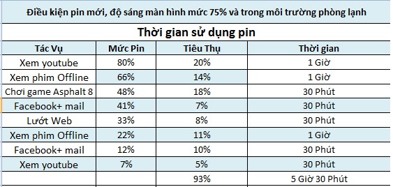 Với trải nghiệm pin thực tế khi cài đặt máy thì kết được thời lượng pin tham khảo như sau: