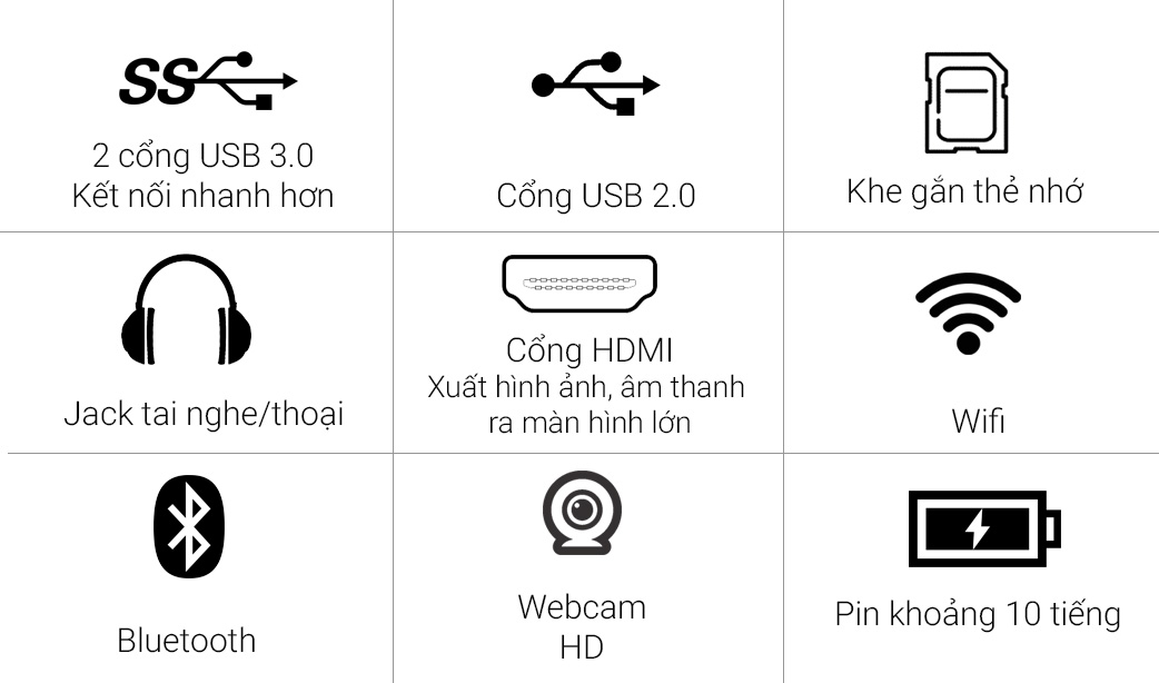 Máy sử dụng ổ cứng SSD 256 GB mang lại thời gian khởi động nhanh, lưu trữ dữ liệu nhanh chóng, RAM 4 GB và nâng cấp tối đa 8 GB.
