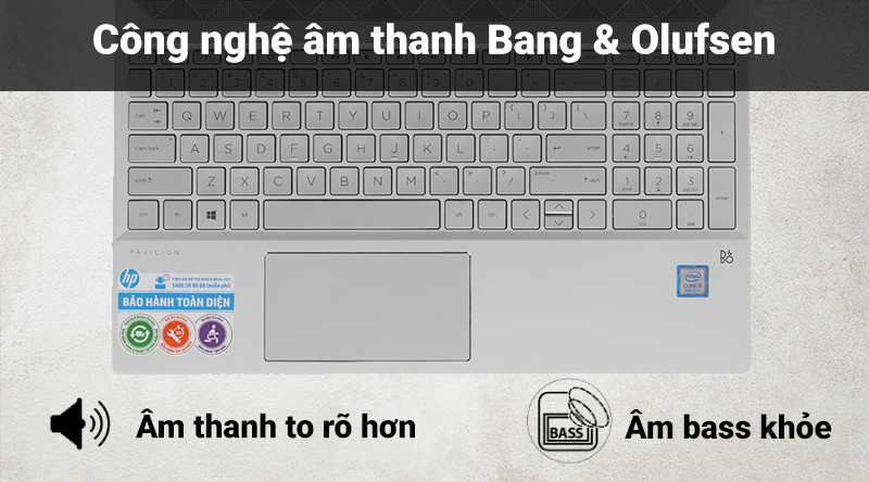 Laptop sử dụng công nghệ Bang & Olufsen hiện đại, công nghệ này tinh chỉnh âm thanh to rõ, sống động hơn, để bạn có trải nghiệm nghe tuyệt vời nhất trên máy tính xách tay.