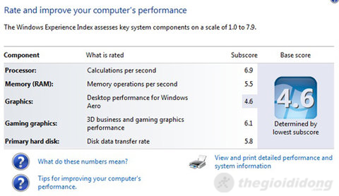 Khi chấm bằng hệ thống Windows Experience Index, HP ProBook 4430s đạt 4,6 điểm