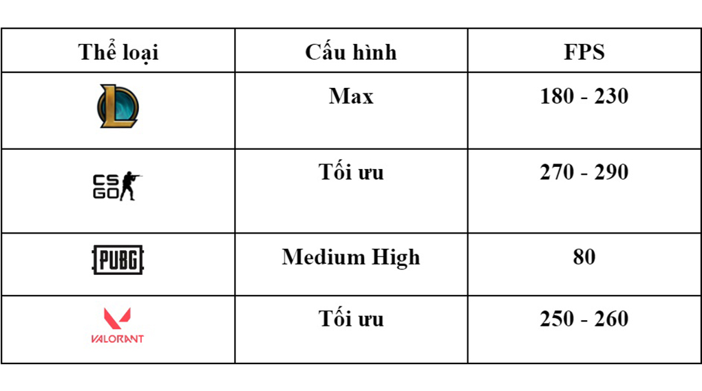 Trong trải nghiệm giải trí thực tế với những tựa game phổ biến nhất, máy cho khả năng chơi ổn định, mức FPS cao cụ thể như sau: