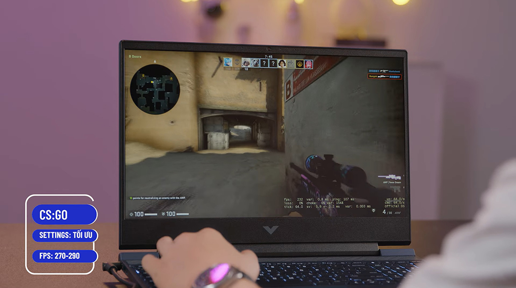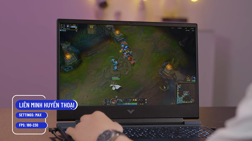Trong quá trình chơi máy cũng không tỏa quá nhiều nhiệt ở khu vực cụm phím "WASD", do đó mình không cảm thấy khó chịu khi thao tác, chơi game trong thời gian dài. Đây cũng là một điểm cộng của HP VICTUS 15 so với các sản phẩm gaming khác có hệ thống tản nhiệt nằm ở hai cạnh bên của máy.