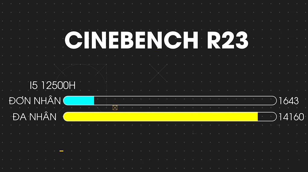 Mình đã thử đo hiệu năng của HP VICTUS 15 bằng công cụ Cinebench R23 được hai con số 1643 điểm đơn nhân và 14160 điểm đa nhân, từ đó cho thấy mức hiệu năng trên cả mong đợi, có thể vận hành mượt mà những tác vụ nặng mà không bị giật, lag hay đơ máy làm ảnh hưởng đến tiến độ công việc cũng như trải nghiệm giải trí.
