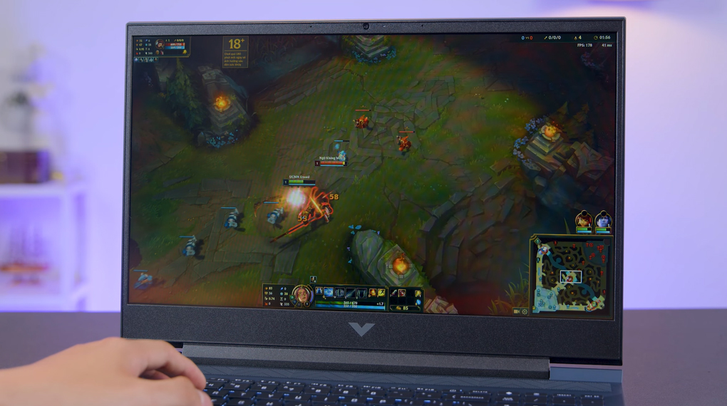 Và tất nhiên, khi nói đến những mẫu laptop gaming thì không thể thiếu được những tựa game rồi. Đầu tiên mình cũng đã thử chơi một tựa game thịnh hành mà hầu như đã quá quen thuộc với các anh em rồi, đó là Liên Minh Huyền Thoại. Cảm giác chơi khi mình để mức cấu hình cao nhất vẫn rất mượt mà, di vuốt, điều hướng hay giao tranh đều ổn định với FPS đâu đó giao động từ 110 - 140.