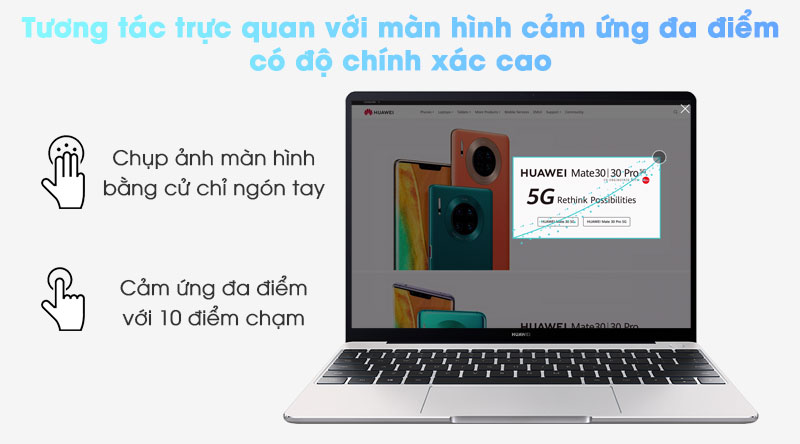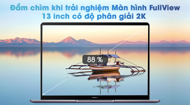 Với màn hình chất lượng 2K, HUAWEI MateBook 13 kích thước 13 inch không chỉ là một chiếc màn hình ấn tượng, mà còn đem tới trải nghiệm hình ảnh bao trùm cực kỳ sống động.