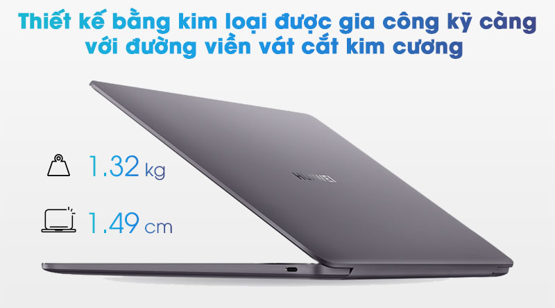 Thiết kế tối giản với độ mỏng chỉ 14.9 mm, cùng chất liệu kim loại được chạm khắc kỹ càng tạo nên một HUAWEI MateBook 13 đầy sang trọng, đẳng cấp.