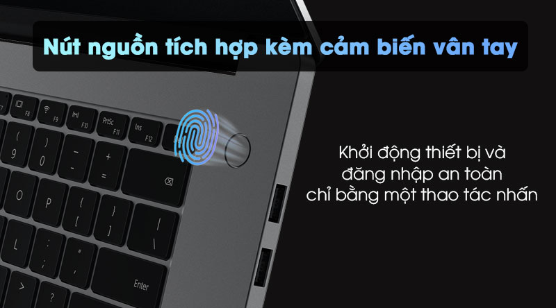 Laptop trang bị cảm biến vân tay được tích hợp trên nút nguồn để bạn dễ dàng đăng nhập chỉ bằng một thao tác chạm, nâng cao độ bảo mật hơn cho thông tin trên máy.
