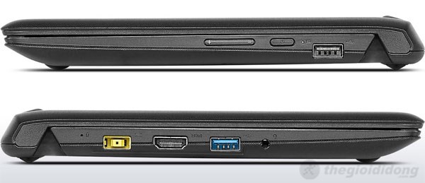 Do kích thước máy mỏng nên thiết bị có khá ít cổng kết nối trên hai cạnh bên của mình. Flex 10 chỉ sở hữu hai cổng USB một 2.0 và một cổng 3.0, ngoài ra còn có cổng HDMI và jack audio 2 trong 1. Bên cạnh trái Lenovo đã thiết kế thêm hai nút ấn để người dùng có thể dễ dàng điều chỉnh âm lượng mà không cần thao tác trên máy.