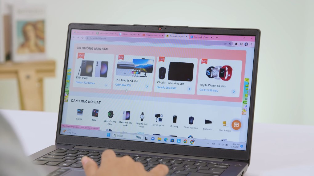 Laptop Lenovo được trang bị màn hình 14 inch độ phân giải Full HD (1920 x 1080) với khả năng hiển thị hình ảnh rõ nét, chi tiết và màu sắc tươi tắn. Từ đó, cho mình trải nghiệm xem phim, xem hình ảnh, chơi game hoặc làm việc với các ứng dụng văn phòng tương đối lý tưởng. Tấm nền TN của màn hình mang lại góc nhìn rộng và độ tương phản tốt, cho phép mình xem nội dung trên màn hình từ nhiều góc độ khác nhau mà không bị mất màu hay biến dạng hình ảnh.