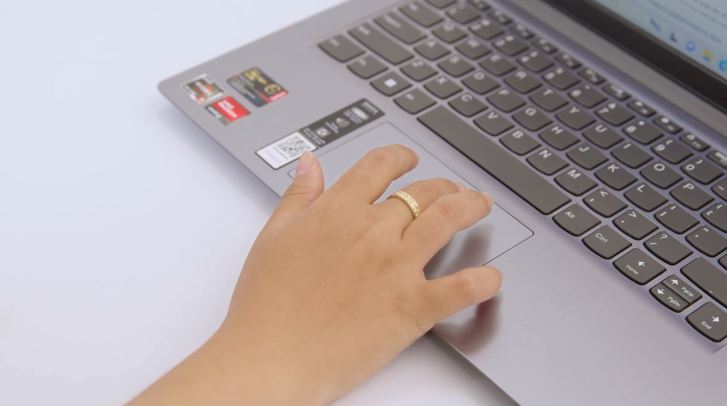 Bên cạnh bàn phím, bàn di chuột của IdeaPad 3 14ABA7 cũng được hoàn thiện tốt với kích thước vừa phải, đủ rộng để mình thực hiện các thao tác khác nhau một cách thuận tiện và chính xác. Bề mặt của bàn di chuột được làm từ vật liệu nhẵn giúp ngón tay trượt mượt trên đó, đồng thời cũng hỗ trợ các động tác đa chạm, cho phép mình thu/phóng, cuộn và thực hiện các thao tác khác một cách nhanh chóng.