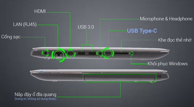 Lenovo IdeaPad 320 15IKBRN (81BG009LVN) được trang bị nhiều cổng kết nối phổ biến, nổi bật phải kể đến như: USB 3.0, USB Type-C, LAN (RJ-45), HDMI, khe đọc thẻ nhớ... giúp cắm với các thiết bị ngoại vi xung quanh khi cần mà không lo sợ thiếu cổng, thật tuyệt vời và tiên lợi.