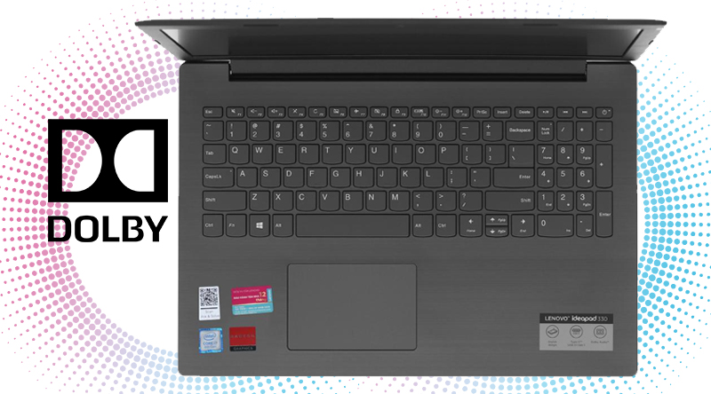 Laptop Lenovo IdeaPad 330 được trang bị công nghệ âm thanh Dolby Audio™ Premium tạo nên hiệu ứng âm thành vòm giúp âm thanh hay hơn, trong trẻo hơn, giúp loại bỏ hầu hết các tạp âm.