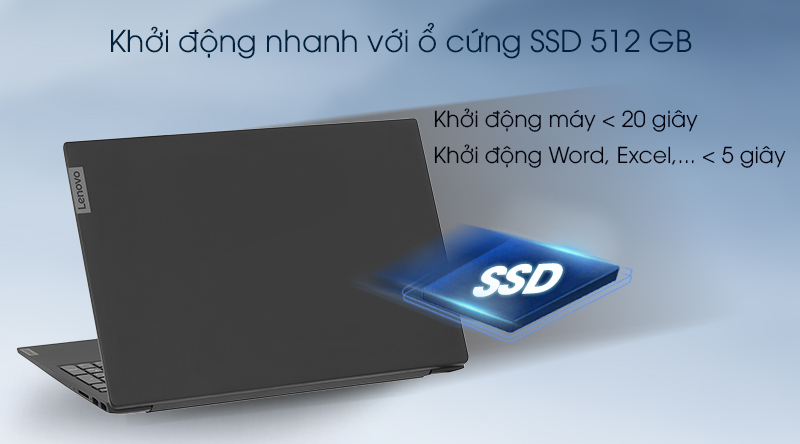 Việc trang bị ổ cứngSSD 512 GB giúp cho Lenovo IdeaPad S340 mất chưa đến 20 giây để khởi động máy, mở các ứng dụng hay trình duyệt cũng chỉ mất 3 - 5 giây.
