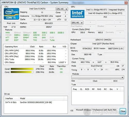 Bản thông số kỹ thuật của Lenovo Thinkpad X1 Carbon