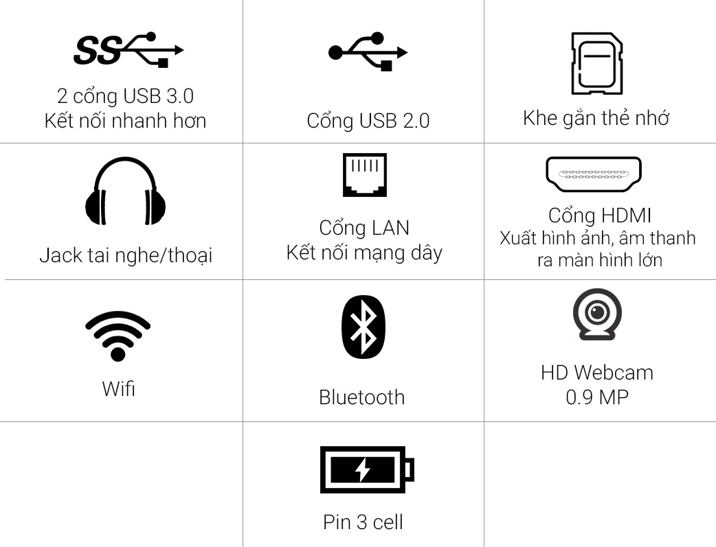 Máy sử dụng dòng chip xử Intel core i5 Skylake có hiệu năng tốt, tiết kiệm năng lượng. RAM 4 GB và có thể nâng cấp lên 8 GB, ổ đĩa HDD 500 GB thoải mái lưu trữ.