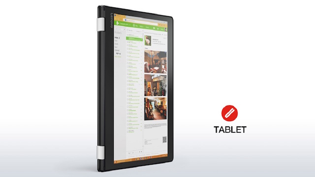 Bản lề xoay 360 độ là đặc điểm nhận dạng ở dòng sản phẩm YOGA này. Với 4 chế độ: dạng đứng, dạng lều, dạng tablet và dạng laptop thông thường, người dùng có thể tùy biến để thích nghi với công việc.