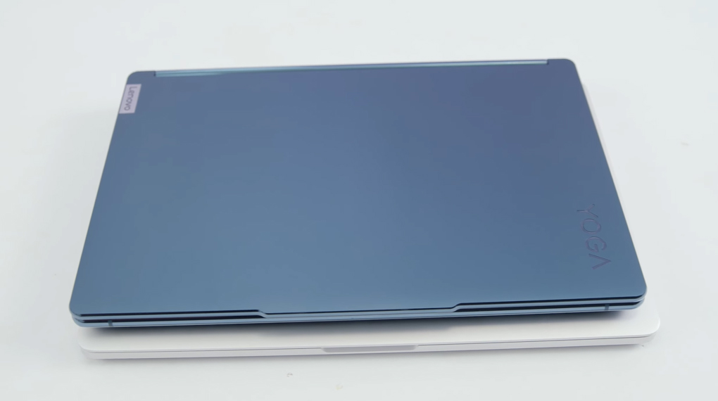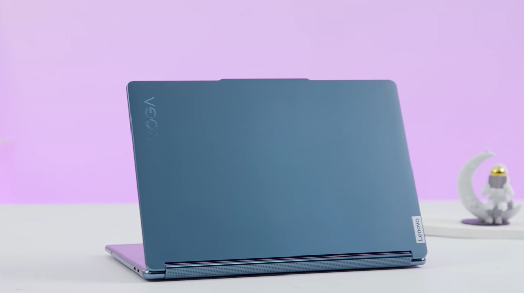 Chỉ có thể nói là thiết kế từ tương lai, nhỏ gọn, thu hút, tinh tế và độc đáo hoàn toàn chính xác là những mỹ từ mình dùng ngay từ lần bắt gặp chiếc Lenovo Yoga Book 9 này. Vỏ nhôm cứng cáp cùng tông xanh bắt mắt, được chế tác với kim loại nên máy cũng dễ lưu lại dấu vân tay nên các bạn lưu ý đem theo bên mình chiếc khăn tay để sử dụng nhé, nhưng cũng cho mình cảm giác thích tay khi sờ vào hay cầm nắm. Điểm quanh khung viền là lớp sơn phủ bóng, cho một cảm giác bóng bẩy và sang trọng nhất định.