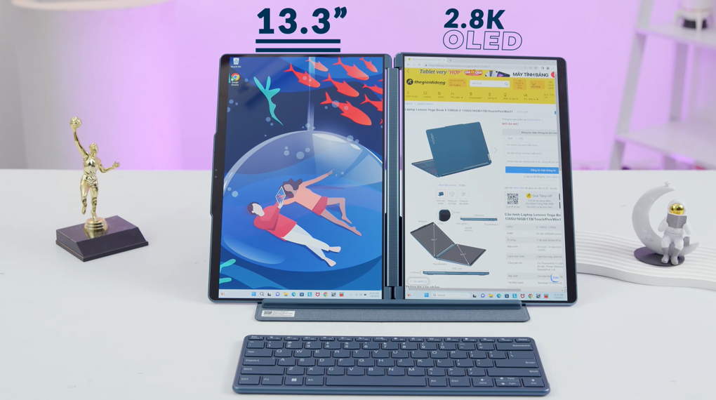 Về mặt tổng thể, laptop Lenovo Yoga Book 9 13IRU8 i7 1355U mang đến những trải nghiệm sử dụng thú vị với màn hình kép độc đáo, hình ảnh hiển thị sắc nét, khả năng đáp ứng công việc vượt trội. Mẫu laptop này chắc chắn sẽ là sự lựa chọn không thể tuyệt vời hơn cho những người dùng yêu thích tính mới lạ hoặc những doanh nhân đang tìm kiếm một thiết bị nhỏ gọn, linh động cho mọi công việc thường ngày.