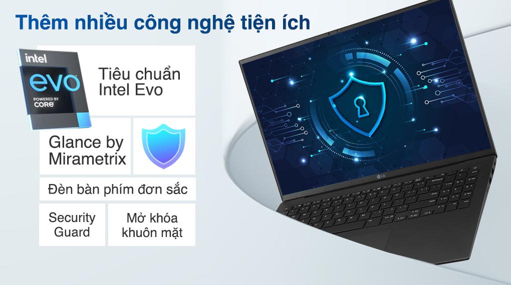 Ngoài ra, LG Gram 2023 cũng đạt tiêu chuẩn Nền Intel Evo, đảm bảo sự tương thích, hiệu suất và trải nghiệm người dùng tốt nhất. Với tiêu chuẩn này, máy tính được đảm bảo sẽ đáp ứng các yêu cầu cao về hiệu năng, tuổi thọ pin, khởi động nhanh và tính di động.
