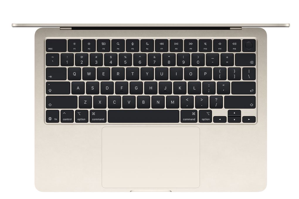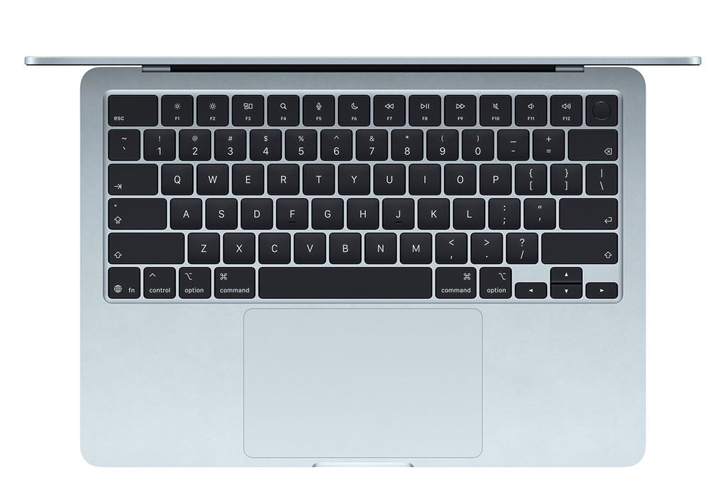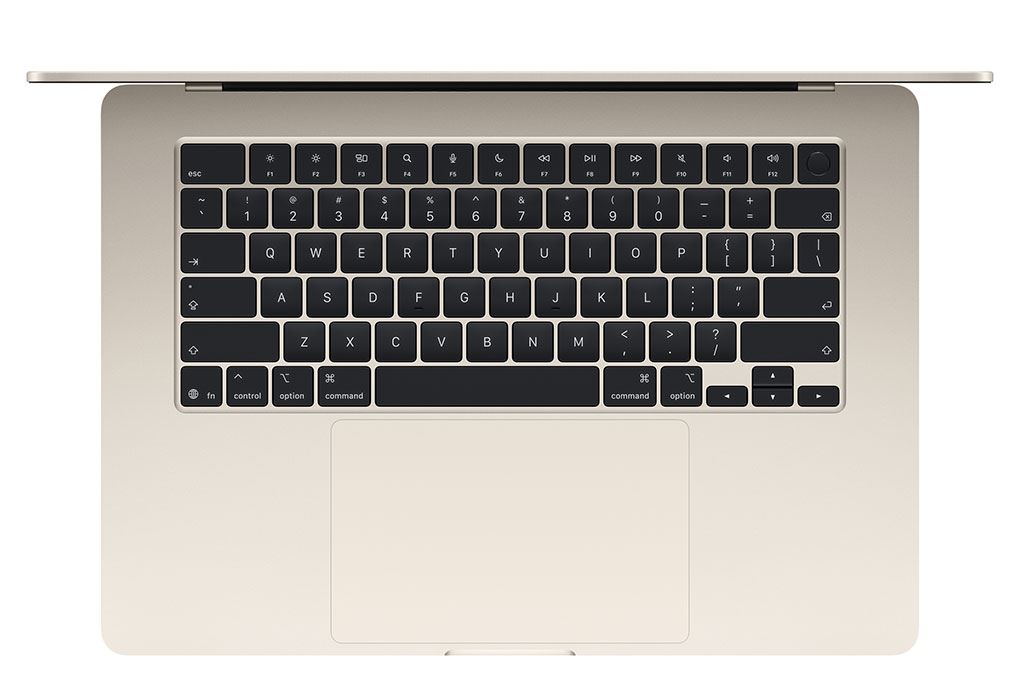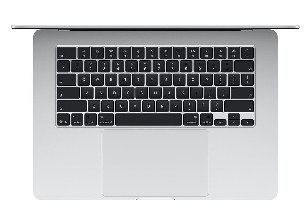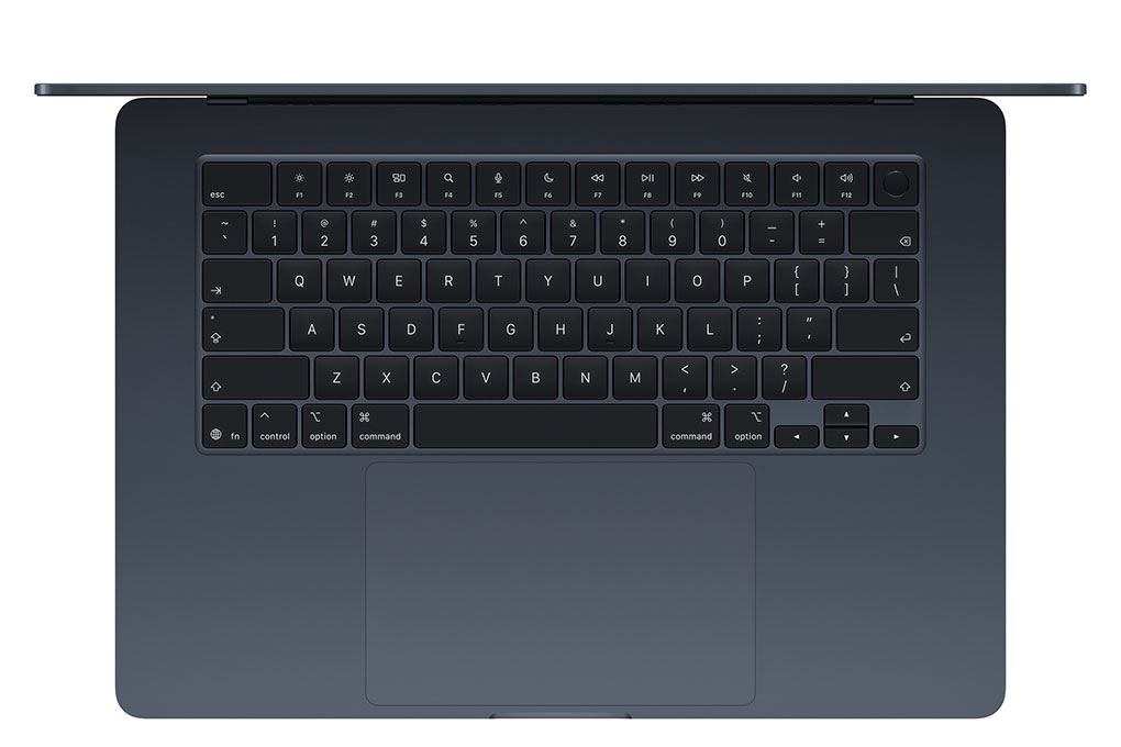 Bàn phím và trackpad trên MacBook Air 15 inch với chip M5 mang lại trải nghiệm sử dụng chính xác và thoải mái. Máy được trang bị Magic Keyboard với hành trình phím ổn định, độ nảy tốt giúp gõ văn bản nhanh và ít mỏi tay khi làm việc lâu. Bên cạnh đó, trackpad Force Touch kích thước lớn hỗ trợ đa điểm mượt mà, giúp thao tác cuộn, phóng to hay chuyển ứng dụng nhanh chóng và chính xác.