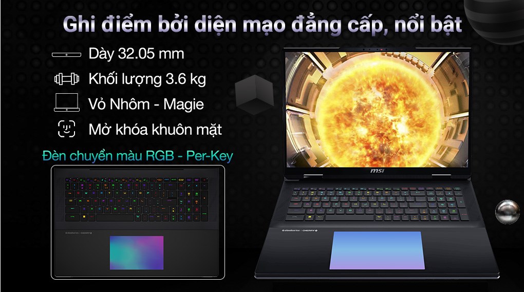 Tận hưởng cảm giác gõ phím cực đã trên bàn phím cơ Cherry MX Ultra Low Profile độc đáo, dạng thiết kế dành riêng cho những dòng laptop dạng mỏng để anh em game thủ có được những cảm giác trọn vẹn nhất khi sử dụng. Đèn chuyển màu RGB - Per-Key cùng đèn LED dưới TouchPad cho bạn tha hồ set up để cải thiện cảm hứng cá nhân, LED còn có thể mô phỏng được dạng ánh sáng tương thích với hoạt động chơi game hay coi phim của bạn.