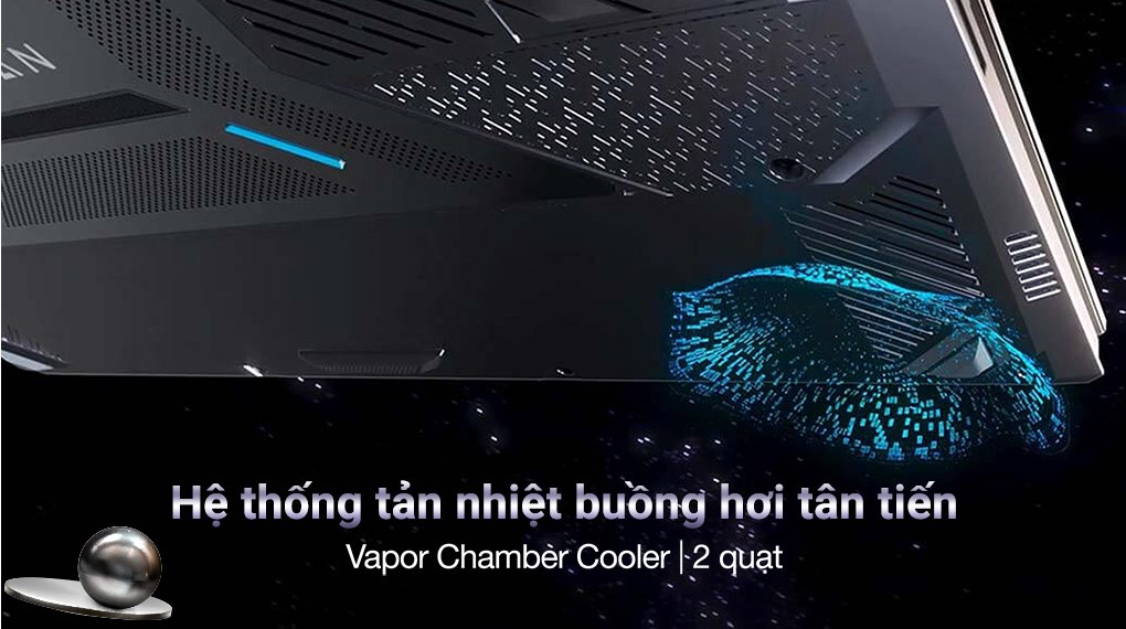 Hệ thống tản nhiệt buồng hơi tân tiến Vapor Chamber Cooler với 2 quạt, 4 hốc xả gió cùng thiết kế dạng chân đế 3D góp phần giảm tối ưu lượng nhiệt để duy trì hiệu suất cao nhất khi chơi game hay làm việc.