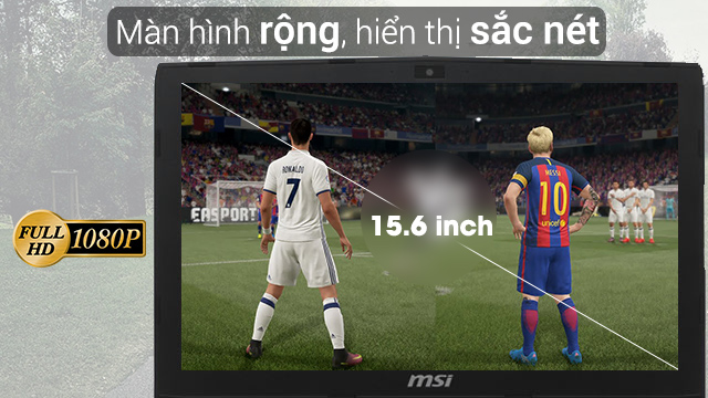 Laptop MSI GL62M 7RDX i7 7700HQ có màn hình Full HD (1920 x 1080) cho độ phân giải sắc nét khi chơi game và kích thước là 15.6 inch khá lớn cho góc nhìn "khá sướng".