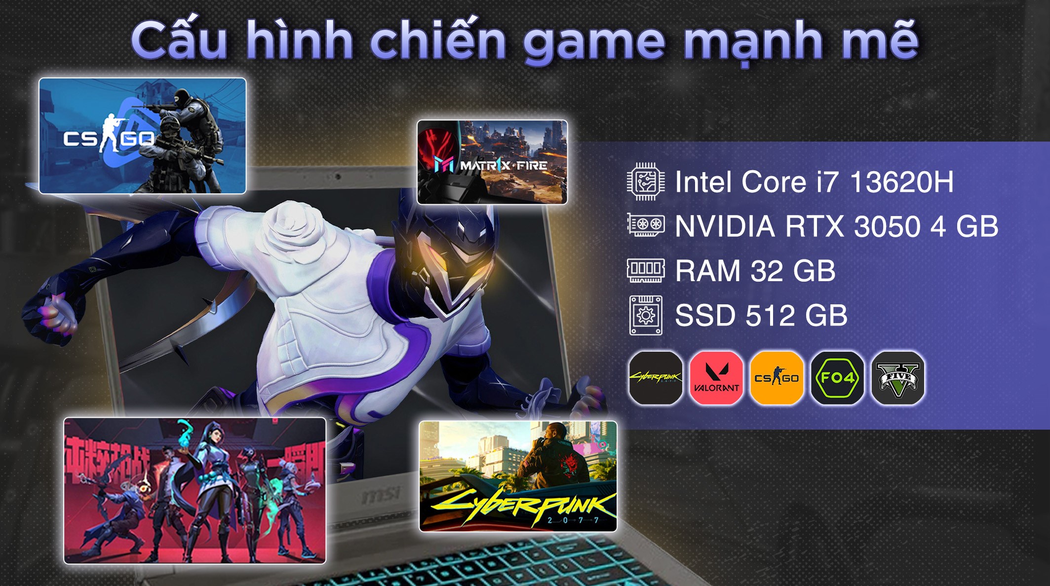 Laptop MSI Thin được trang bị bộ vi xử lý Intel Core i7 Raptor Lake 13620H, một trong những dòng CPU tiên tiến nhất hiện nay. Với 10 nhân 16 luồng, CPU này xử lý mượt mà mọi tác vụ, từ làm việc văn phòng đến chỉnh sửa video hay lập trình. Turbo Boost lên đến 4.9 GHz giúp máy đạt hiệu suất tối ưu trong các ứng dụng nặng, mang lại trải nghiệm mượt mà và nhanh chóng, tiết kiệm thời gian làm việc cho người dùng.