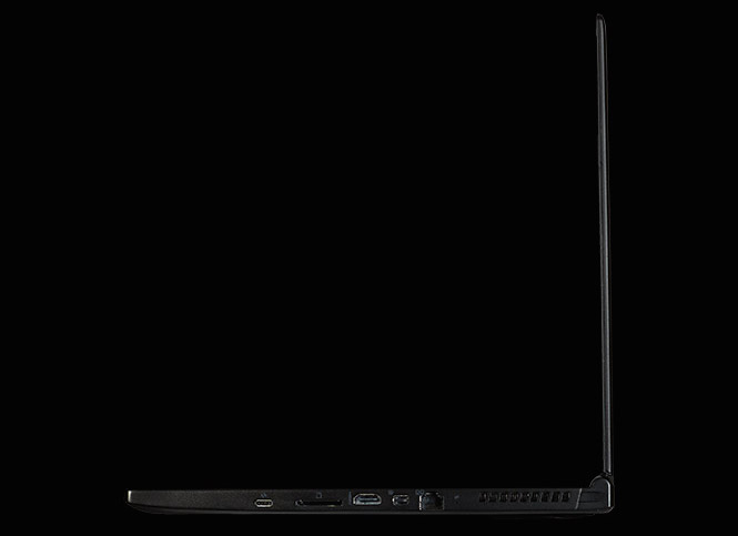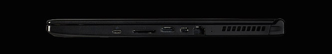 Cạnh trái là khe tản nhiệt, chỗ cắm sạc, 2 USB 3.0 và các jack cắm âm thanh