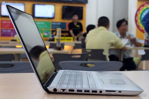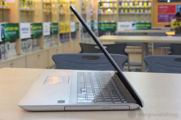 Ngoài ra cạnh trái của Sony Vaio Fit 15 không có cổng USB nào, điều này có nghĩa là bạn phải vòng dây chuột ra sau máy cắm ở bên phải khi muốn sử dụng chuột rời, tuy nhiên điều này không hề đáng ngại bởi màn hình của máy có hỗ trợ cảm ứng đa điểm và Touchpad hoạt động rất tốt.