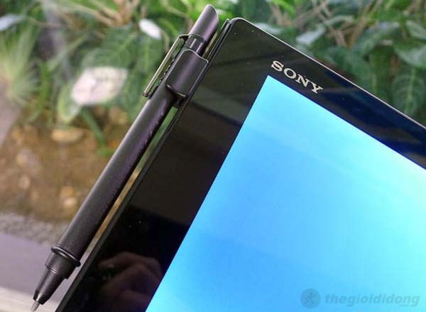 được trang bị bút cảm ứng Stylus đi kèm có độ nhạy cao. Bút gồm một đầu cứng và một đầu mềm giúp người dùng sử dụng linh hoạt tùy theo nhu cầu viết vẽ... Bút stylus được gắn vào sườn trái của VAIO Tap 11 vì vậy nên bạn cũng sẽ không lo làm lạc mất nó.