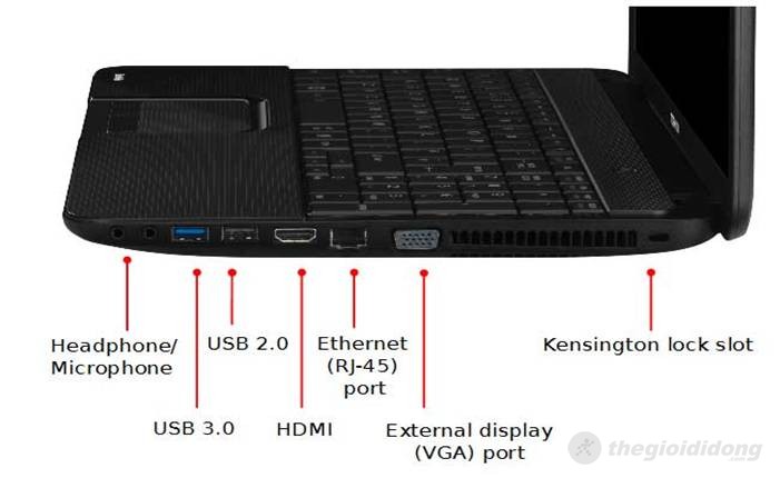 Toshiba Satellite C850 và các công kết nối bên hông máy