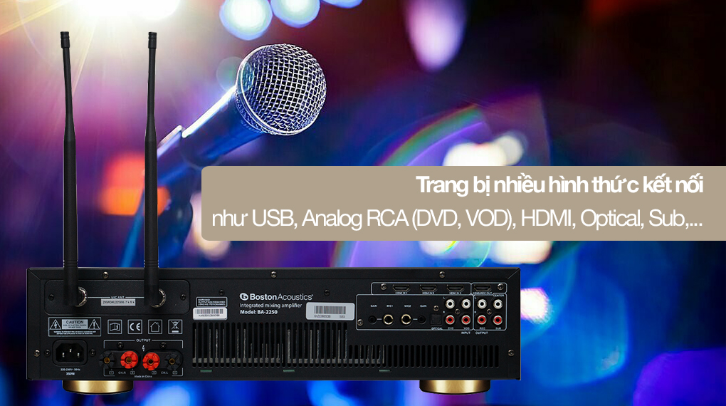 Nhìn chung, amply Boston Acoustics BA2250 600W là thiết bị âm thanh lý tưởng cho bạn và cả gia đình để tạo dàn karaoke cực chất tại nhà khi sở hữu tổng công suất lên đến 600W cùng bộ xử lý âm thanh kỹ thuật số 3DSP giúp âm thanh trở nên hay hơn và nhiều cổng kết nối tiện lợi.