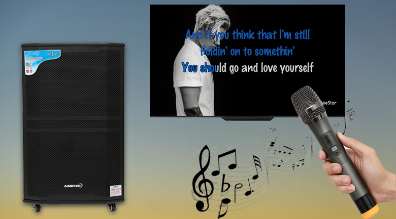 Loa asanzo AL9900 nghe nhạc oke , hát karaoke mic Ko bắt dc tần số .