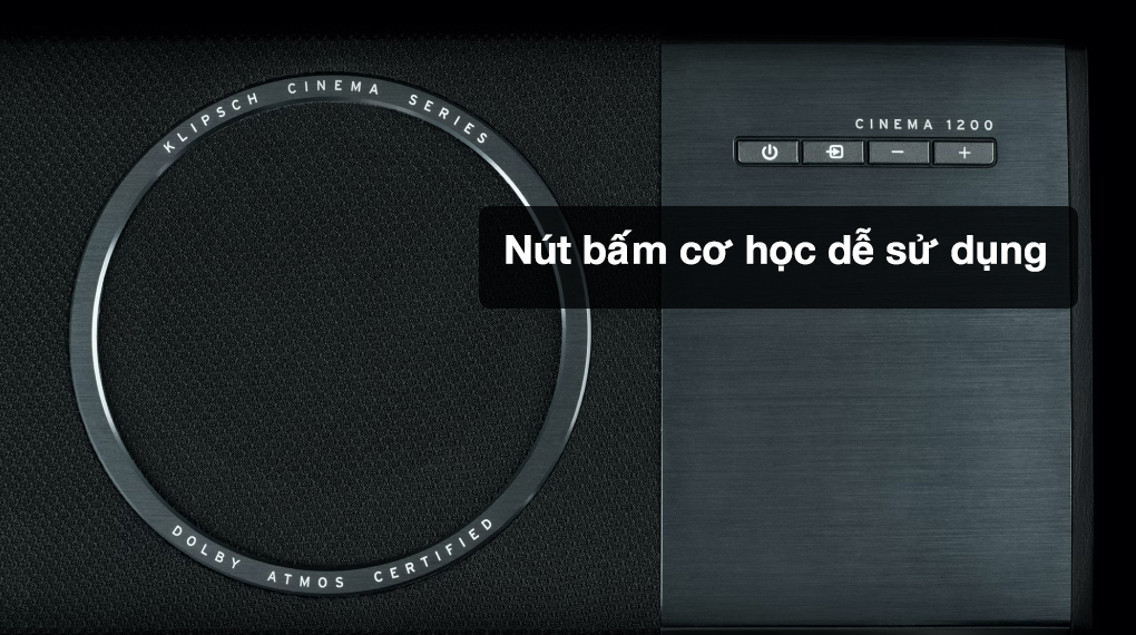 - Bộ loa thanh Klipsch Cinema 1200 1200W có kiểu thiết kế hiện đại với gam màu đen sang trọng, dễ dàng phối hợp với các thiết bị khác trong dàn âm thanh bên trong phòng khách và phòng giải trí của gia đình.
