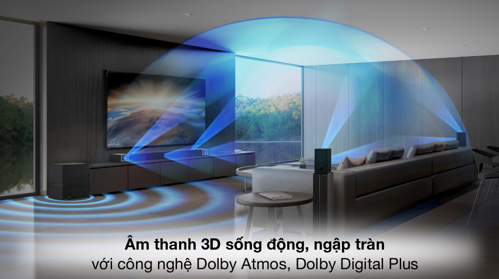 - Công nghệ Dolby Digital Plus: Có khả năng tăng cường độ khuếch đại âm thanh, cho chất lượng âm thanh phát ra mạnh mẽ và lan tỏa đều khắp căn phòng.