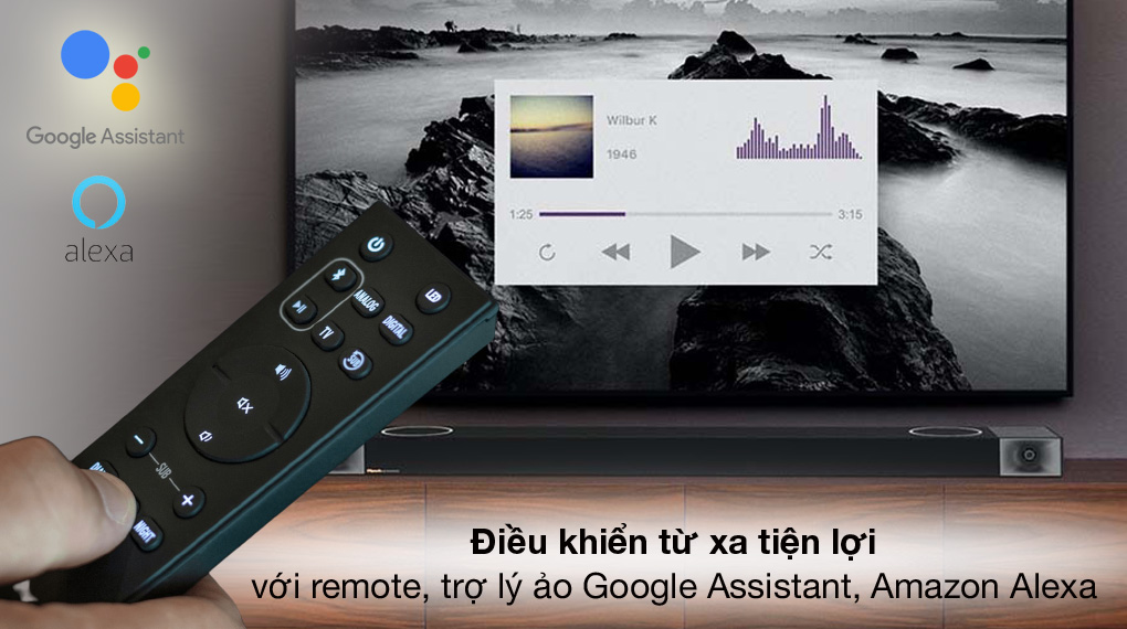 - Bạn có thể điều khiển các chức năng trên loa bằng giọng nói thông qua trợ lý ảo Amazon Alexa hoặc Google Assistant cực tiện lợi.