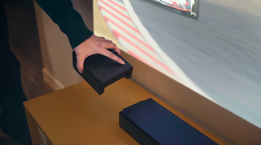 Điểm đáng chú ý nữa là hai loa surround dạng tách rời khi cần xem phim hay chơi game, bạn chỉ việc tháo loa ra và đặt phía sau vị trí ngồi để tạo hiệu ứng âm thanh vòm. Khi không dùng, loa có thể gắn lại lên soundbar để sạc và cất gọn, giữ tổng thể ngăn nắp hơn cho phòng khách.