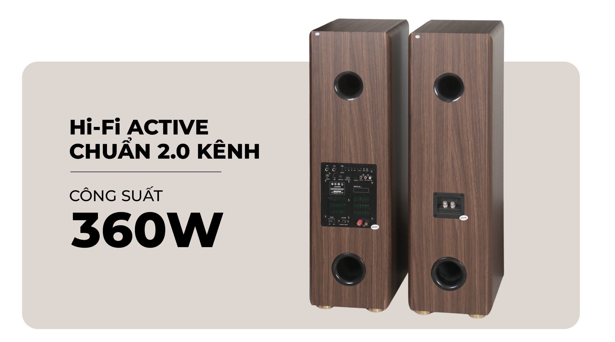 Với kích thước mỗi loa (ngang 32 cm - sâu 42.5 cm - cao 98 cm) và trọng lượng tổng 39.4 kg, đây là một cặp loa mang lại cảm giác chắc chắn và ổn định khi đặt trong không gian sử dụng.