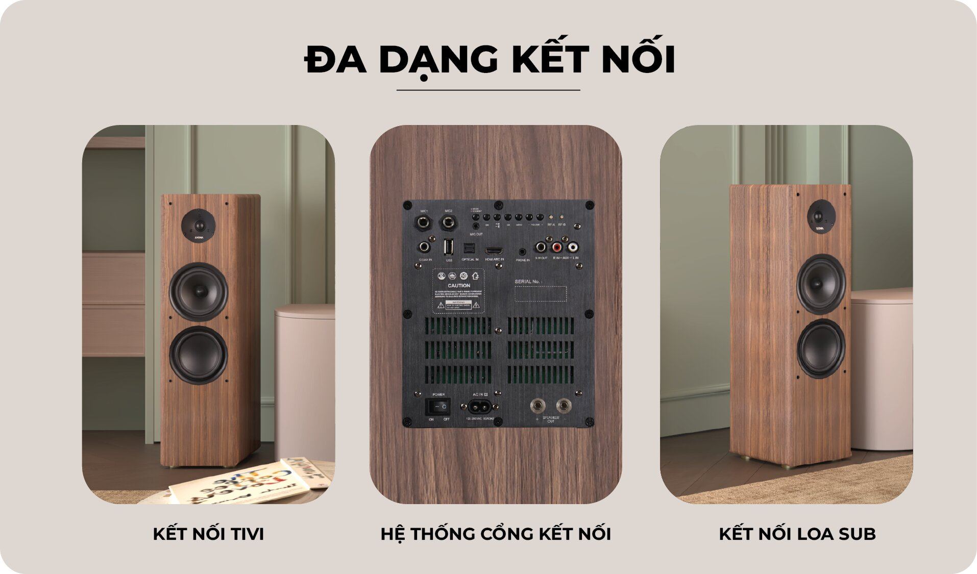 Hệ thống loa 3 đường tiếng tái tạo dải tần rộng từ 45 Hz đến 20 KHz, mang đến trải nghiệm nghe nhạc chân thực, từ những nốt trầm sâu lắng đến âm cao trong trẻo. Dù là những bản nhạc dance sôi động hay giai điệu trữ tình sâu lắng, KADMA BS66 đều xử lý mượt mà, không rè nhiễu ngay cả khi mở âm lượng lớn, phù hợp cho phòng khách rộng hoặc khu vực giải trí riêng của gia đình. Độ nhạy 86 dB kết hợp trở kháng 4Ω góp phần đảm bảo chất âm ổn định, rõ ràng và giàu năng lượng.