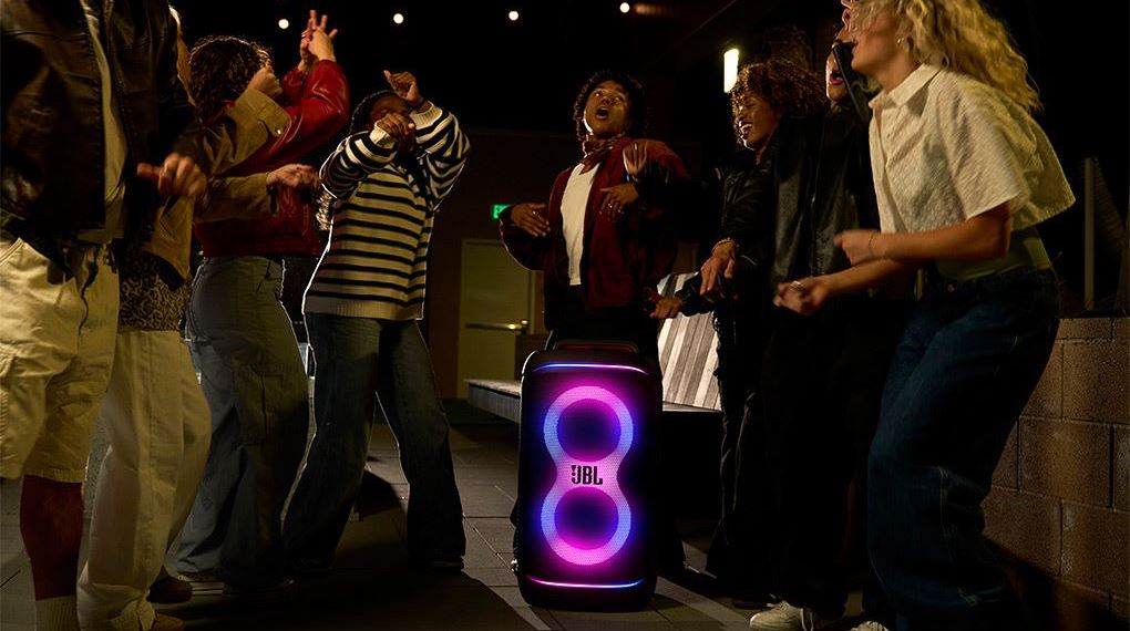 Không chỉ chinh phục người nghe bằng âm thanh, loa JBL này còn gây ấn tượng mạnh với hệ thống đèn LED sống động. Các dải đèn được thiết kế hài hòa với thân loa, tạo nên hiệu ứng ánh sáng lung linh, đồng bộ cùng nhịp điệu âm nhạc. Khi giai điệu dồn dập, ánh sáng trở nên mạnh mẽ và bùng nổ; khi nhạc chậm lại, đèn LED chuyển sang nhịp điệu nhẹ nhàng hơn, giúp cảm xúc được dẫn dắt trọn vẹn.
