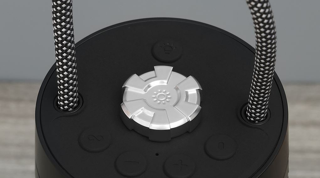 Một trong những tính năng nổi bật của Rezo LightCamp chính là đèn LED tích hợp ngay trong thân loa. Bạn có thể dễ dàng bật tắt, thay đổi màu sắc hoặc điều chỉnh cường độ ánh sáng nhờ nút xoay tiện dụng.