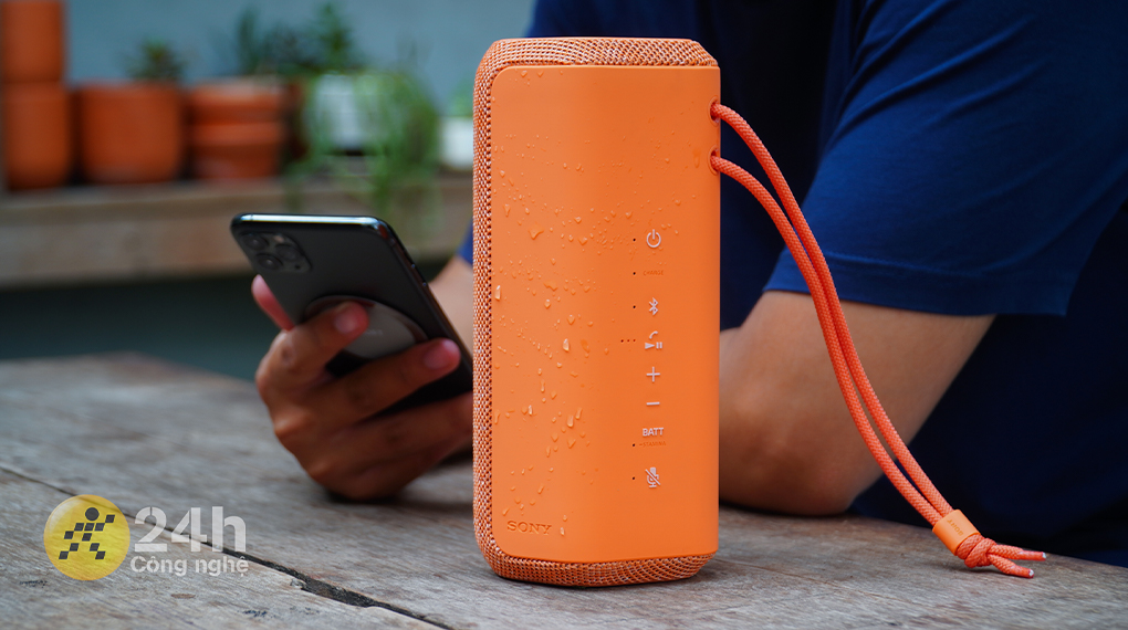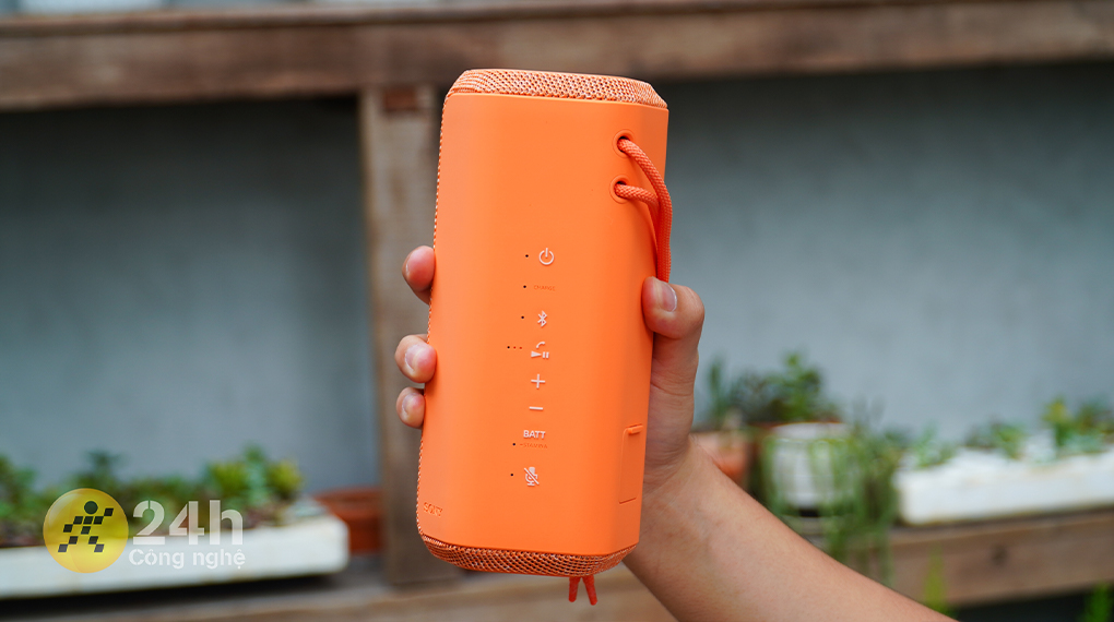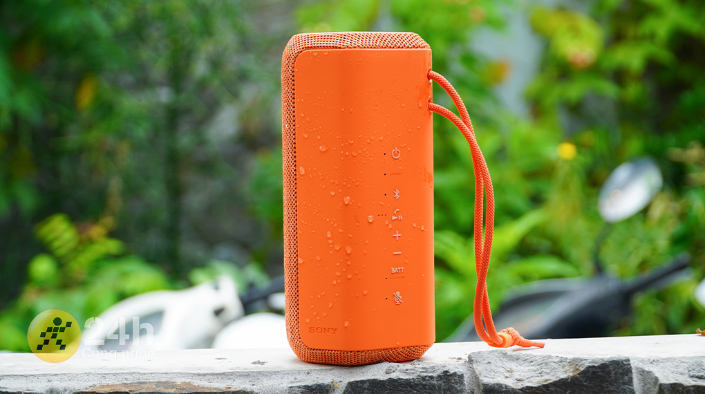Mình thấy Sony sử dụng 2 loại chất liệu ở lớp vỏ ngoài là: Sợi tổng hợp và nhựa cứng cao cấp. Ưu điểm là mình có thể thoải mái đặt loa đứng hoặc nằm ngang ở trên bàn hay bất kỳ loại mặt phẳng nào khác mà không lo loa bị trơn trượt, vì phần nhựa ở cả mặt đáy hay phần thân đều có lớp cao su mỏng giúp loa bám chắc, đứng vững.
