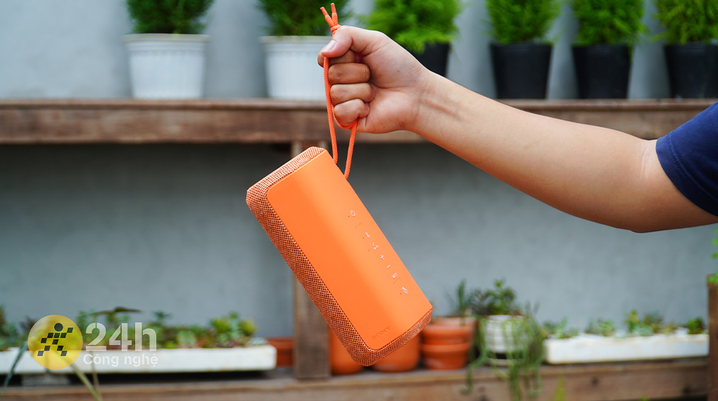 Nếu xét về tính tiện lợi khi cất giữ và mang theo thì chắc chắn mình không thể bỏ qua chi tiết dây treo móc được nhà Sony tỉ mỉ trang bị cho người dùng. Mình cực kỳ thích chi tiết này, bởi trong phòng ngủ mình khá nhỏ, đồ cũng khá nhiều, do vậy một cọng dây nhỏ tích hợp trên loa sẽ giúp mình dễ dàng treo, móc loa trên giá cho căn phòng gọn gàng hơn.