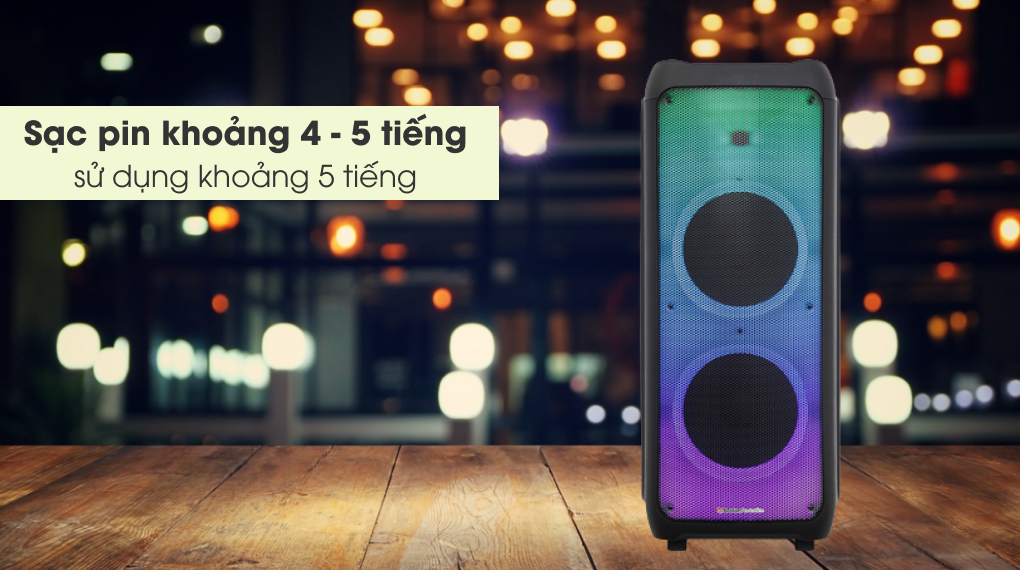 - Loa kéo Boston Acoustics có thể sử dụng khoảng 5 tiếng (với 50% âm lượng) nếu pin được sạc đầy khoảng 4 - 5 tiếng.