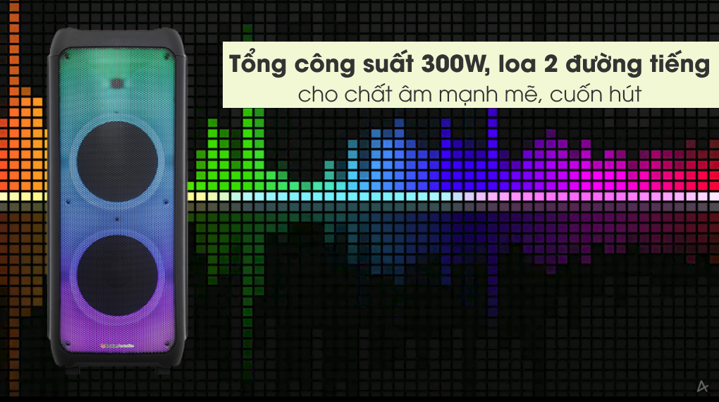 - Tổng công suất 300W, trang bị 2 đường tiếng âm thanh giúp truyền tải chất âm mạnh mẽ, chân thực với mọi nội dung giải trí.